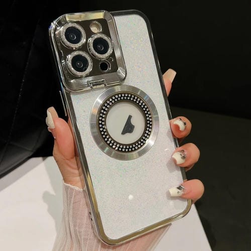 Estuche para Teléfono iPhone 15 Pro Starry Glitter Magsafe con Soporte para Lente (Plateado)