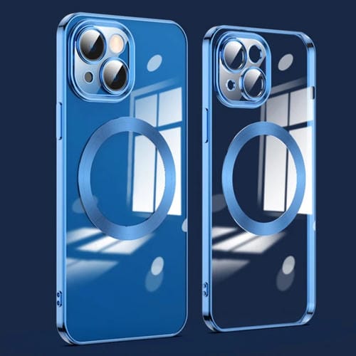 Protector de Lente para iPhone 15 Magsafe Caja de Teléfono Electrochapada (Azul Marino)