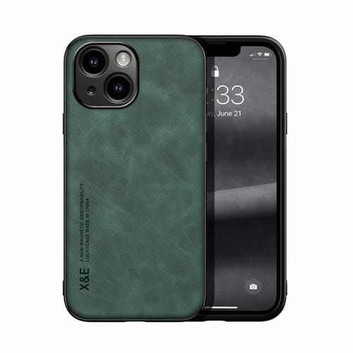 Funda para iPhone 15 Skin Feel Magnetic Leather Back Phone Case (Verde)