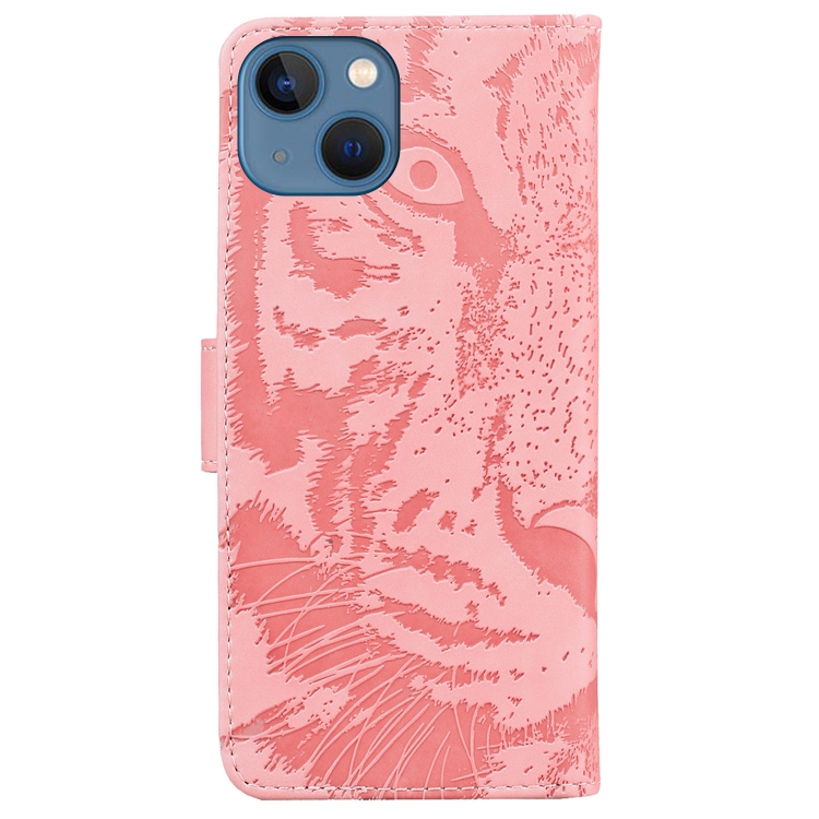 Funda para teléfono iPhone 15 Tiger Embossing Pattern Cuero (Rosa)