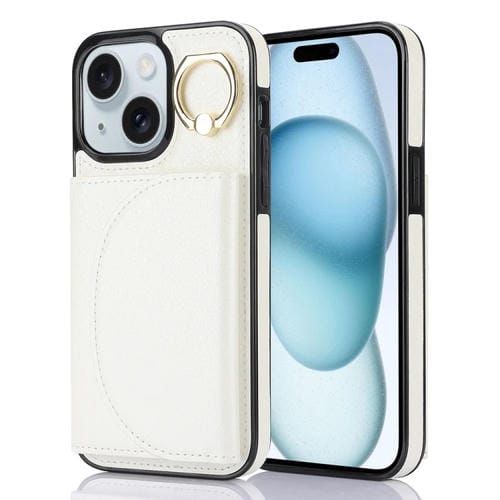 Estuche para Teléfono Ym006 para iPhone 15 con Soporte para Anillo y Tarjeta (Blanco)