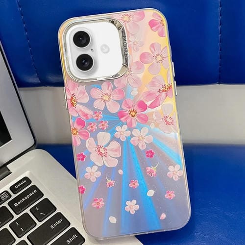 Caja del Teléfono TPU para iPhone 16 con Textura de Flor Láser y Galvanoplastia (Flor Rosa Ah13)