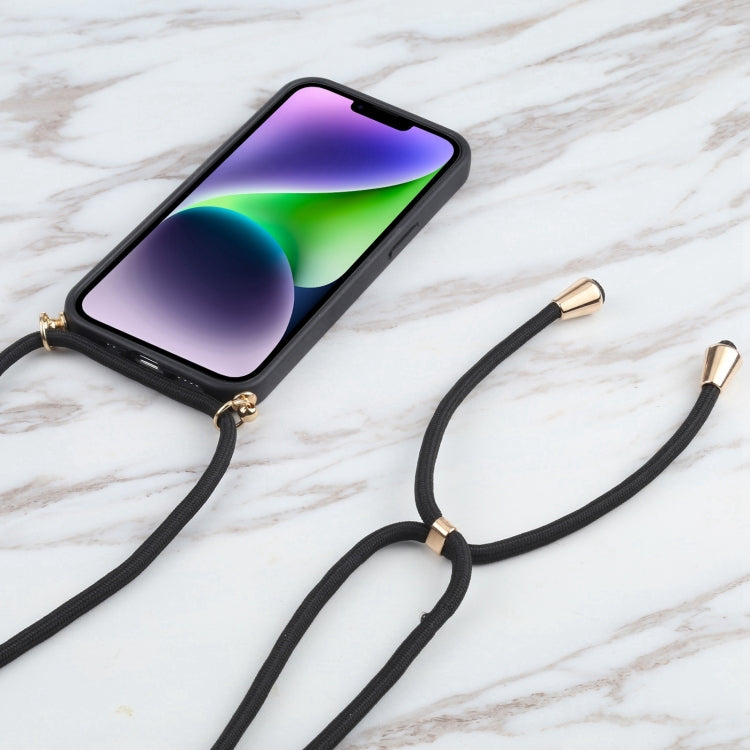 Funda para Teléfono iPhone 16 TPU Paja de Trigo a Prueba de Golpes con Cordón para Cuello (Negro)