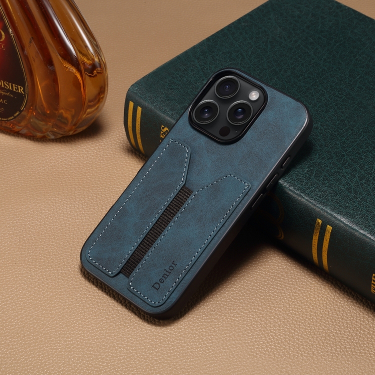 Funda de teléfono Denior D07 Dv para iPhone 16 Plus con ranura para tarjeta elástica de PU (Azul)