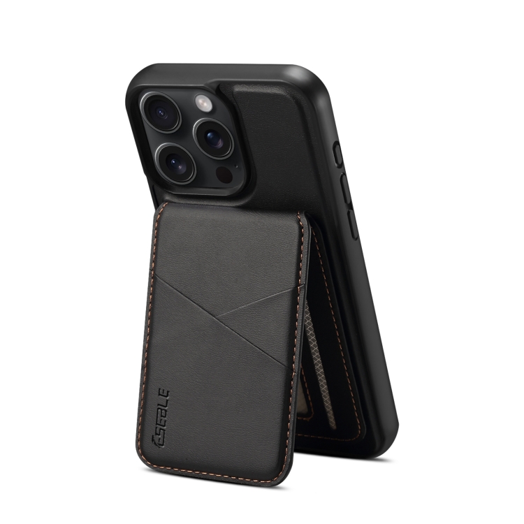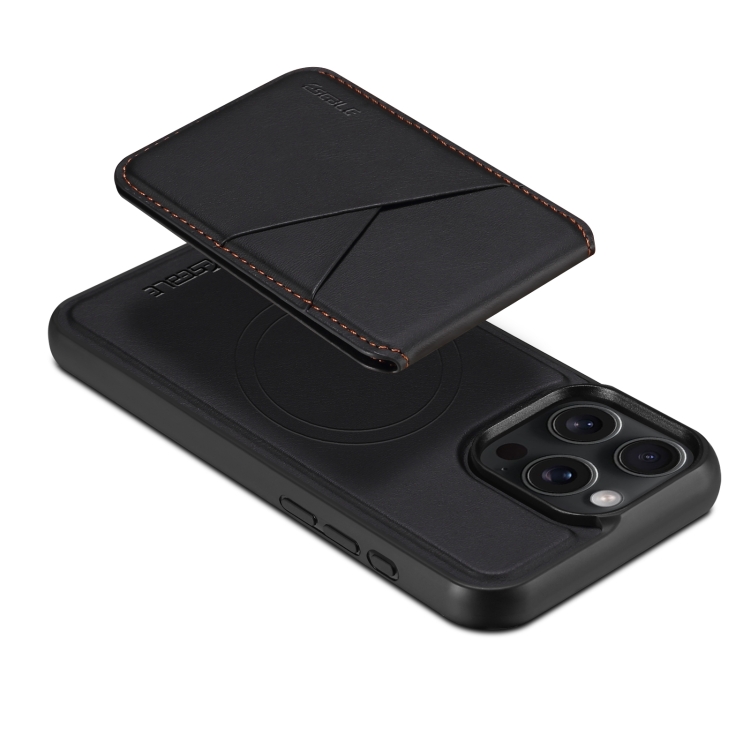 Funda de Cuero Eseble E3 para iPhone 16 Plus con Textura Lisa y Ranuras para Tarjetas Magsafe Rfid (Negro)