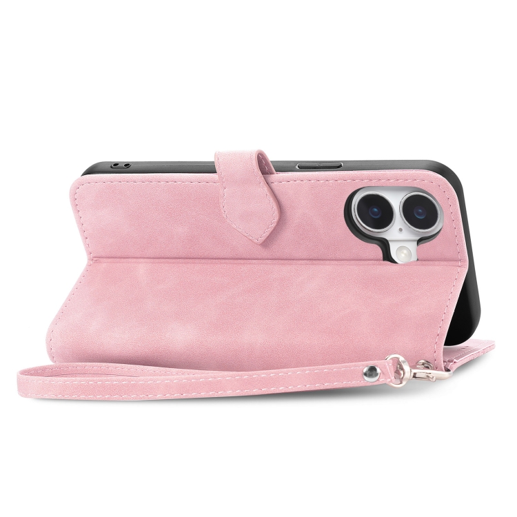 Funda para iPhone 16 Plus Cuero con Cremallera y Flores en Relieve (Rosa)