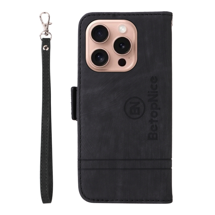 Funda para Teléfono Betopnice iPhone 16 Pro Cuero con Hebilla de Doble Lado (Negro)