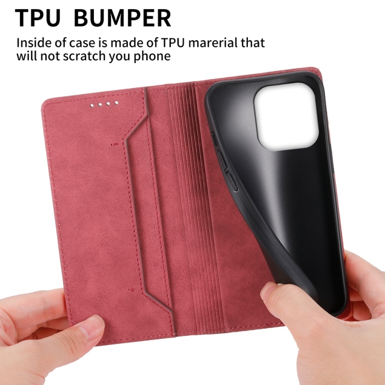 Funda de Teléfono iPhone 16 Pro Cuero Rfid Magnética Color Rojo
