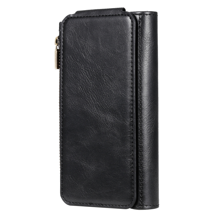 Estuche de Cuero iPhone 6/7/8 Tapa Horizontal Magnética Desmontable Multifuncional Ranuras Tarjetas Soporte Billetera Marco Fotos (Negro)