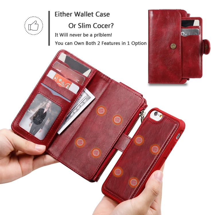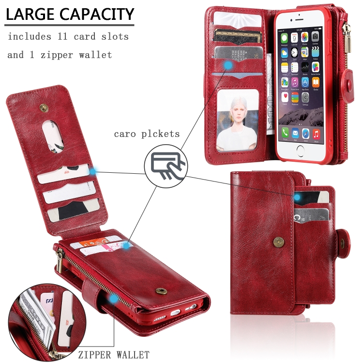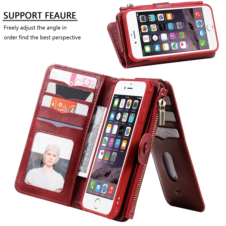 Estuche de Cuero iPhone 6/7/8 Tapa Horizontal Magnética Desmontable Multifuncional (Rojo)