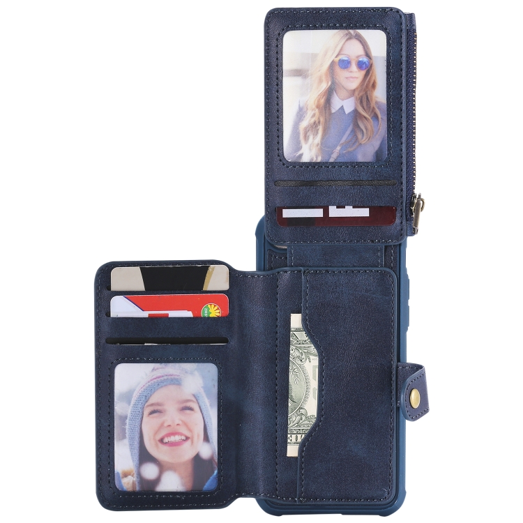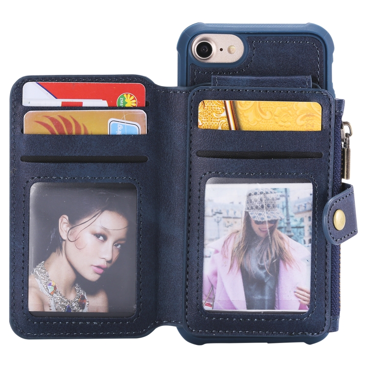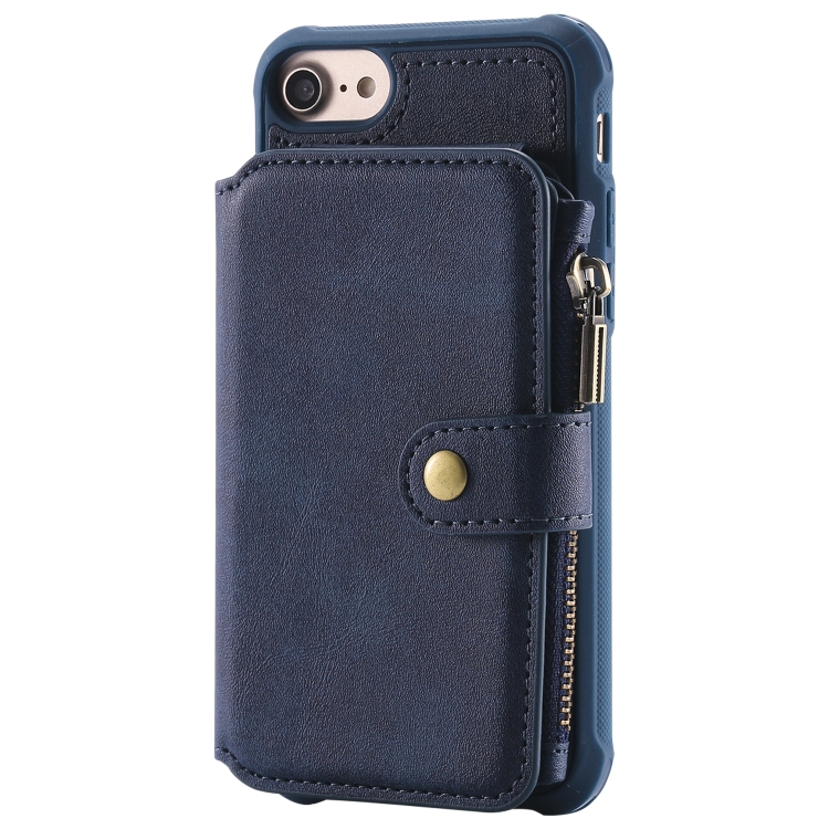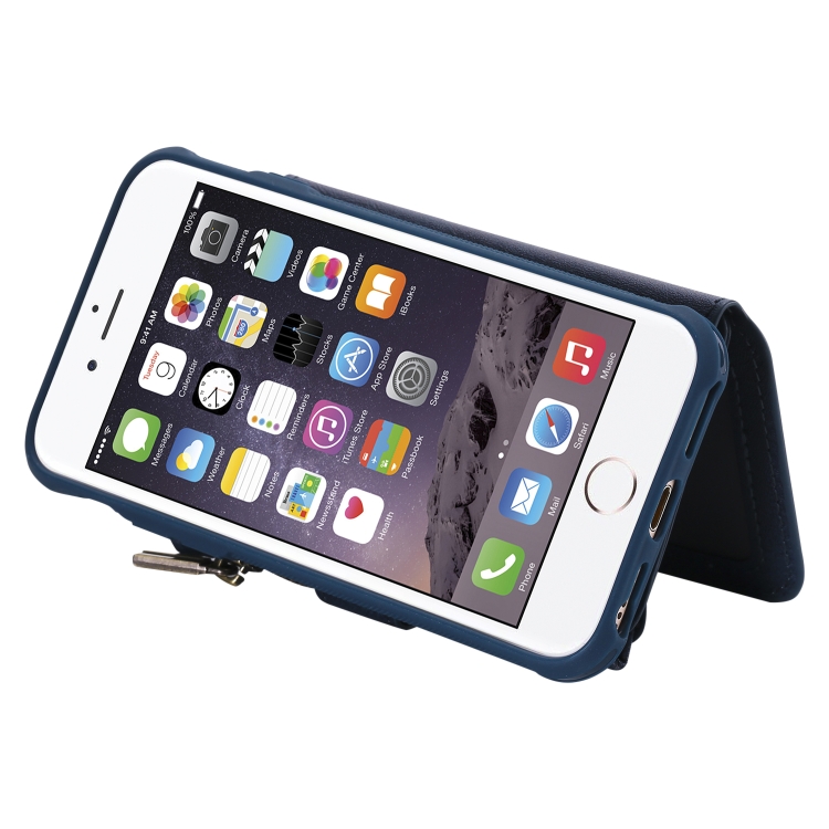 Funda Protectora para iPhone 6 con Cremallera Ranuras para Tarjetas Soporte Fotos Función Billetera (Azul)