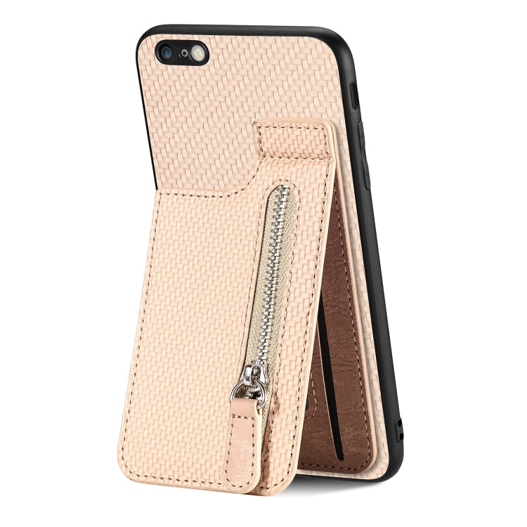 Funda de teléfono iPhone 6 Plus 6S Plus con cremallera vertical fibra de carbono (Caqui)