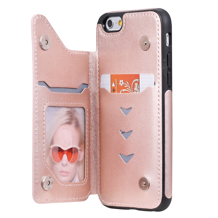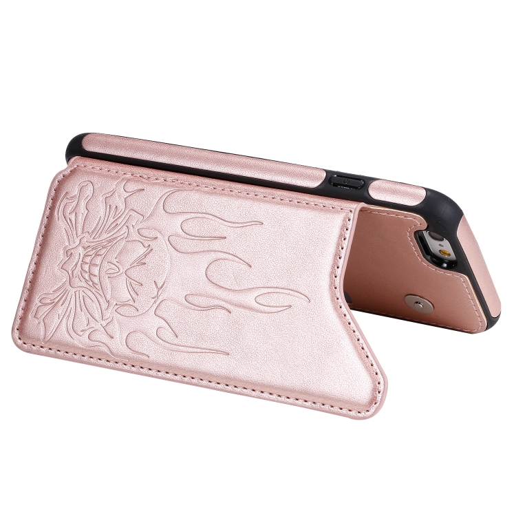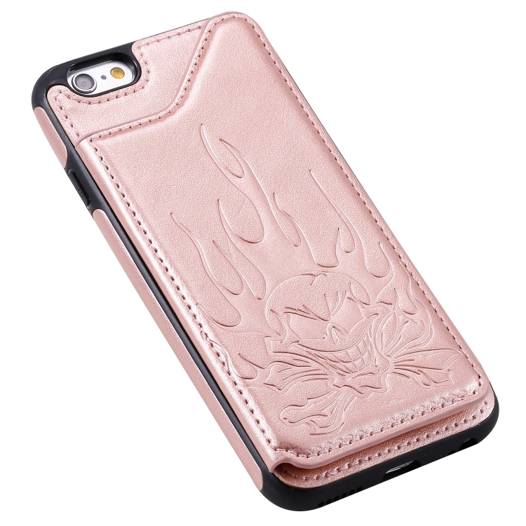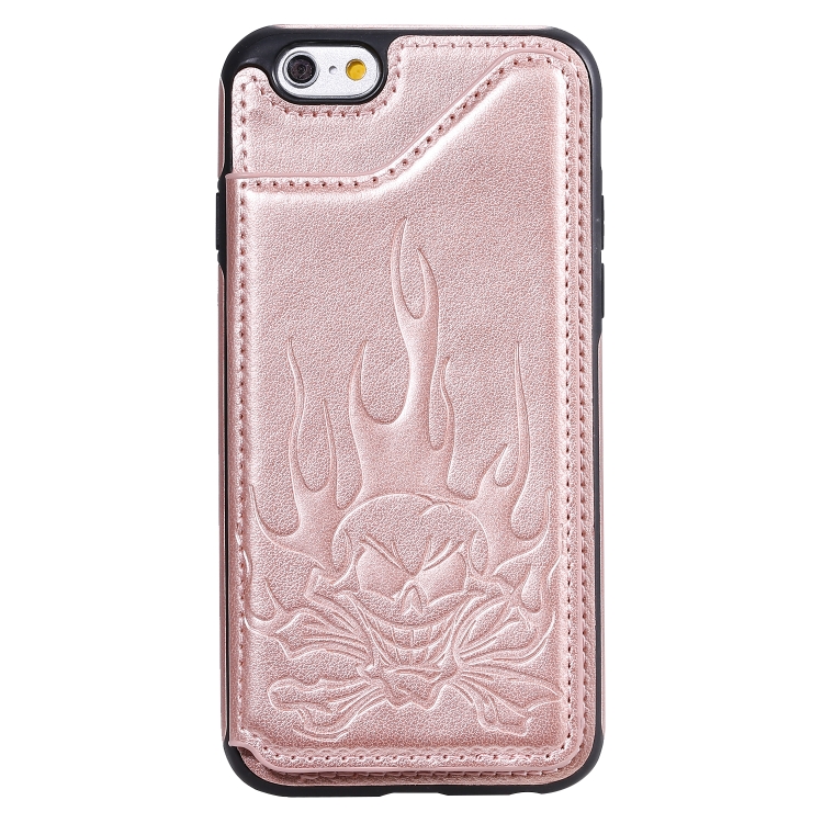 Funda Protectora iPhone 6S / 6 Estampado Cabeza de Calavera con Soporte, Ranuras y Billetera (Oro Rosa)
