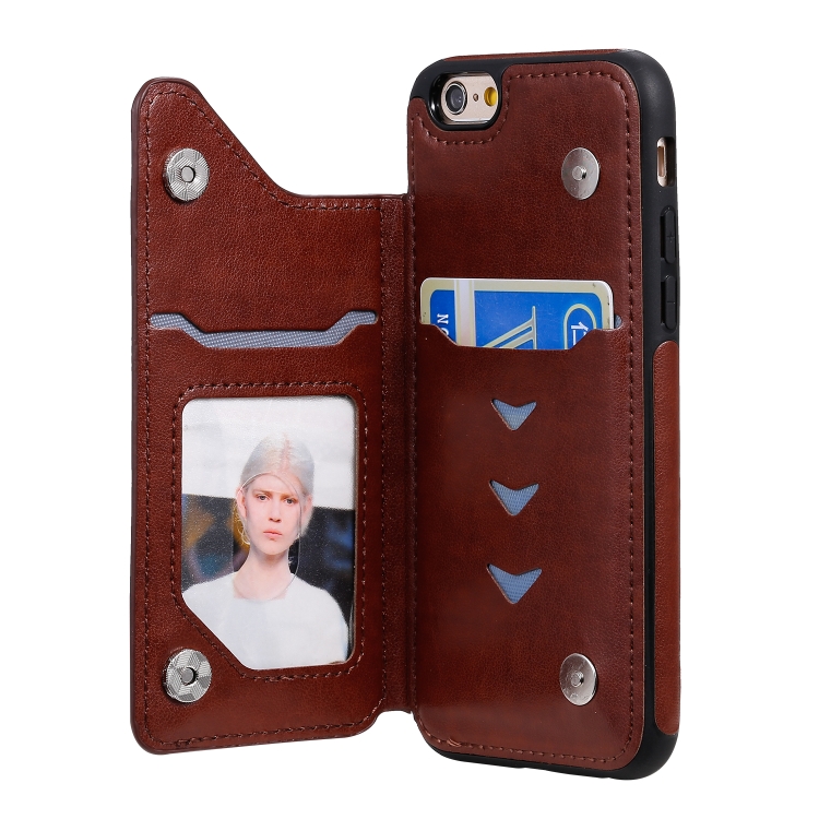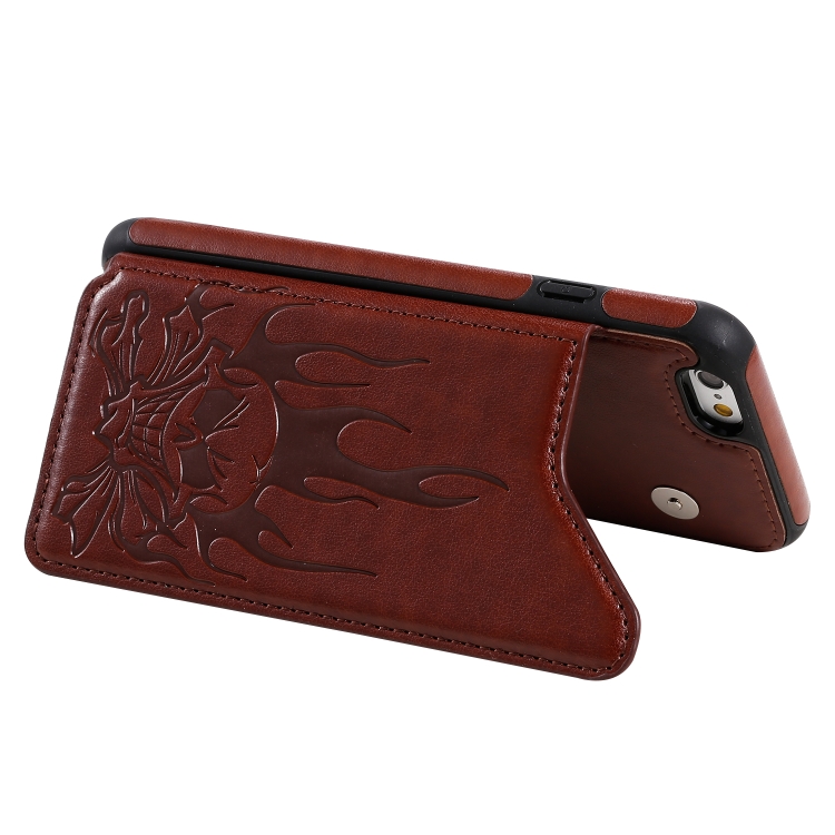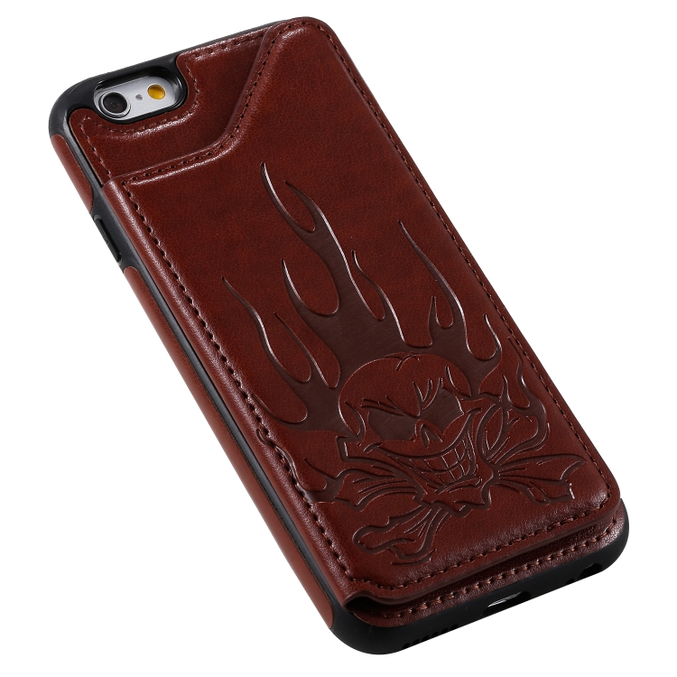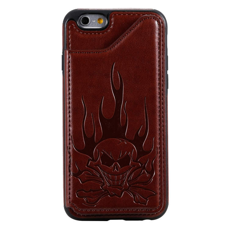 Estuche protector iPhone 6S 6 Skull Head patrón en relieve a prueba de golpes con soporte y ranuras para tarjetas (Marrón)