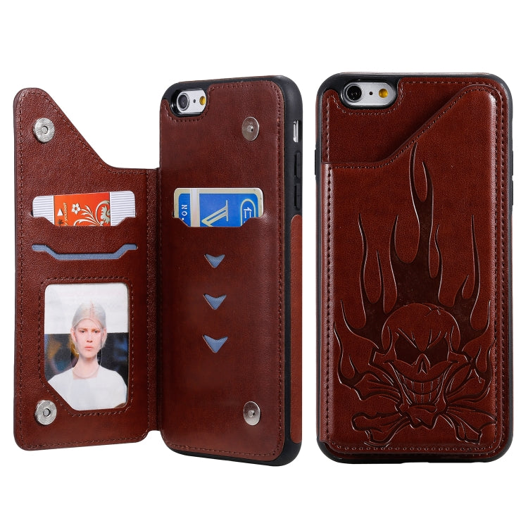 Estuche protector iPhone 6S Plus 6 Plus Skull Head a prueba de golpes con soporte y ranuras para tarjetas (Marrón)