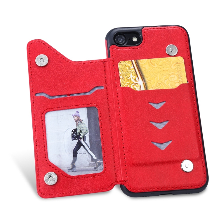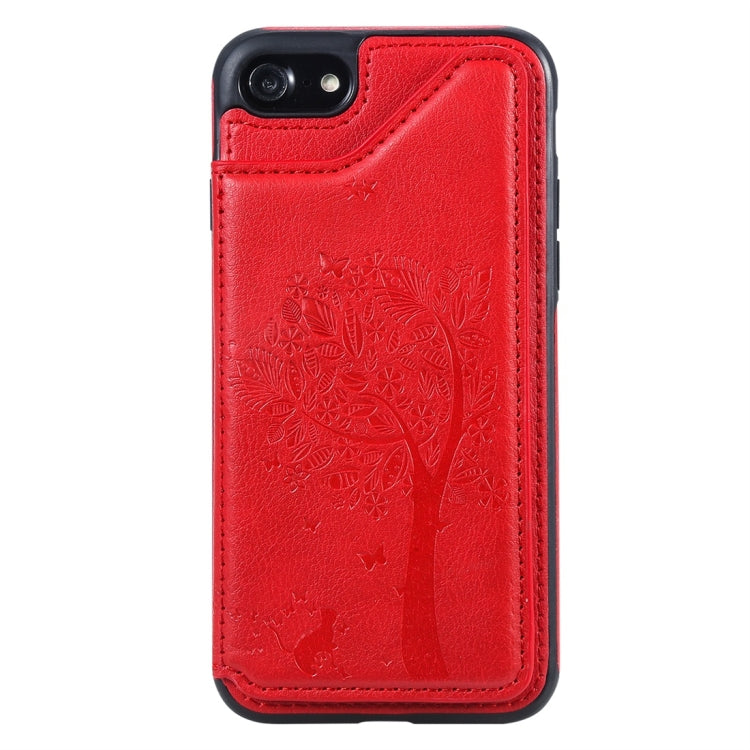 Funda Protectora iPhone 7/8 a Prueba de Golpes con Patrón Relieve Árbol de Gato Ranuras para Tarjetas y Marco de Fotos (Rojo)