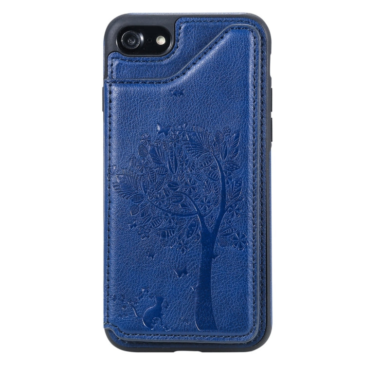 Funda Protectora para iPhone 7/8 con Patrón en Relieve Árbol de Gato Ranuras para Tarjetas Marco de Fotos (Azul)