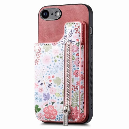 Estuche para Teléfono iPhone 7/8/Se 2022 con Billetera y Cremallera Pintada Retro (Rosa)