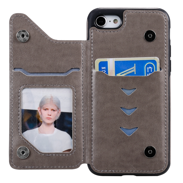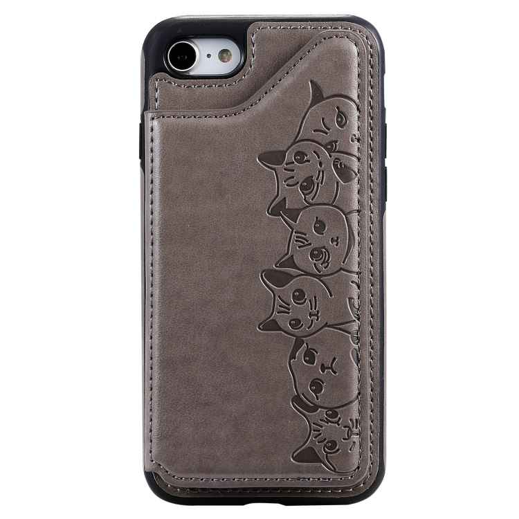 Funda Protectora Six Cats para iPhone 7/8 con Patrón En Relieve, Soporte, Ranuras para Tarjetas y Marco de Fotos (Gris)