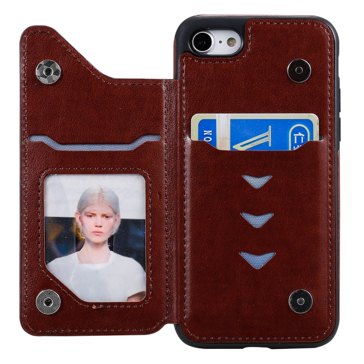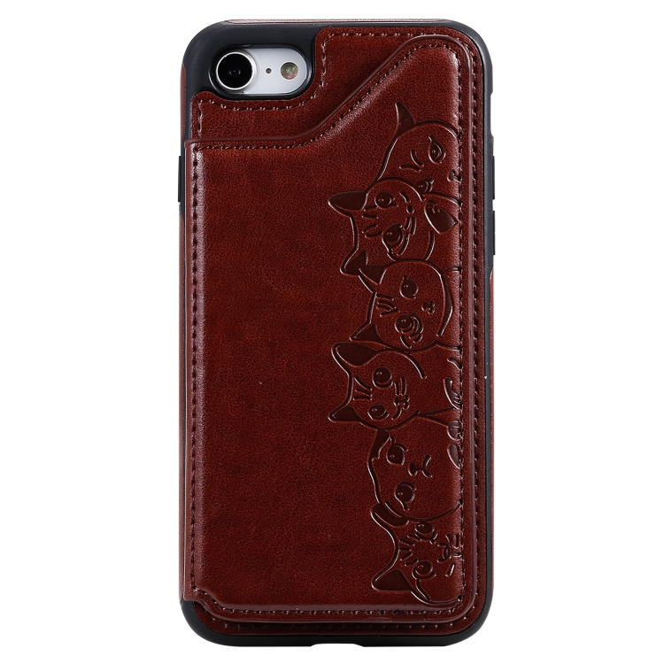 Funda Protectora Six Cats para iPhone 7/8 con Patrón En Relieve, Soporte, Ranuras para Tarjetas y Marco de Fotos (Marrón)