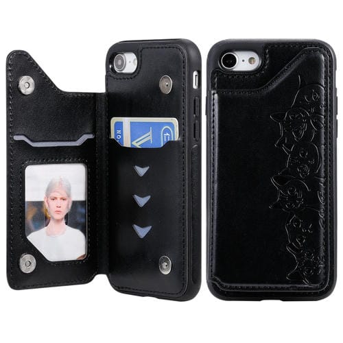 Funda Protectora Six Cats para iPhone 7/8 con Patrón En Relieve, Soporte, Ranuras para Tarjetas y Marco de Fotos (Negro)