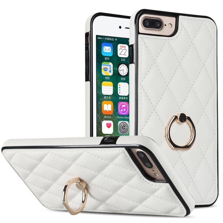 Estuche de Teléfono iPhone 7 Plus 8 Plus Cuero Pu Rómbico con Soporte para Anillo (Blanco)
