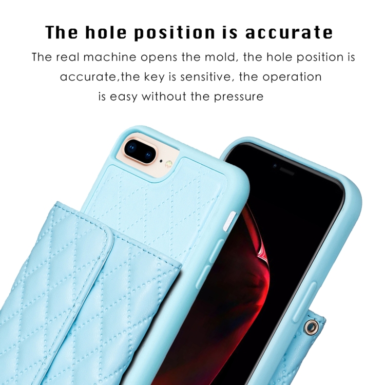 Estuche de teléfono iPhone 7 Plus 8 Plus Cuero Rómbico con Billetera Horizontal (Azul)