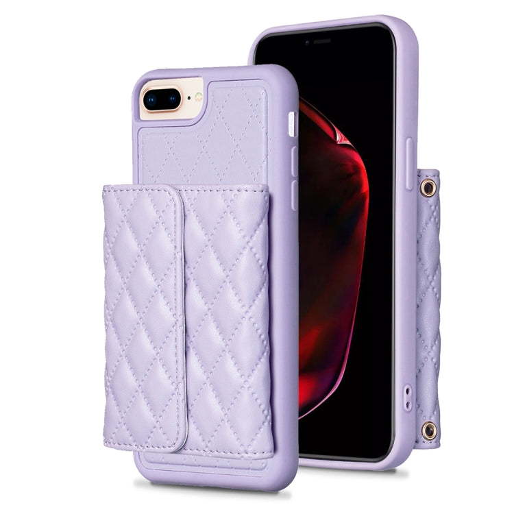 Estuche de teléfono iPhone 7 Plus 8 Plus Cuero Rómbico con Billetera Horizontal (Púrpura)