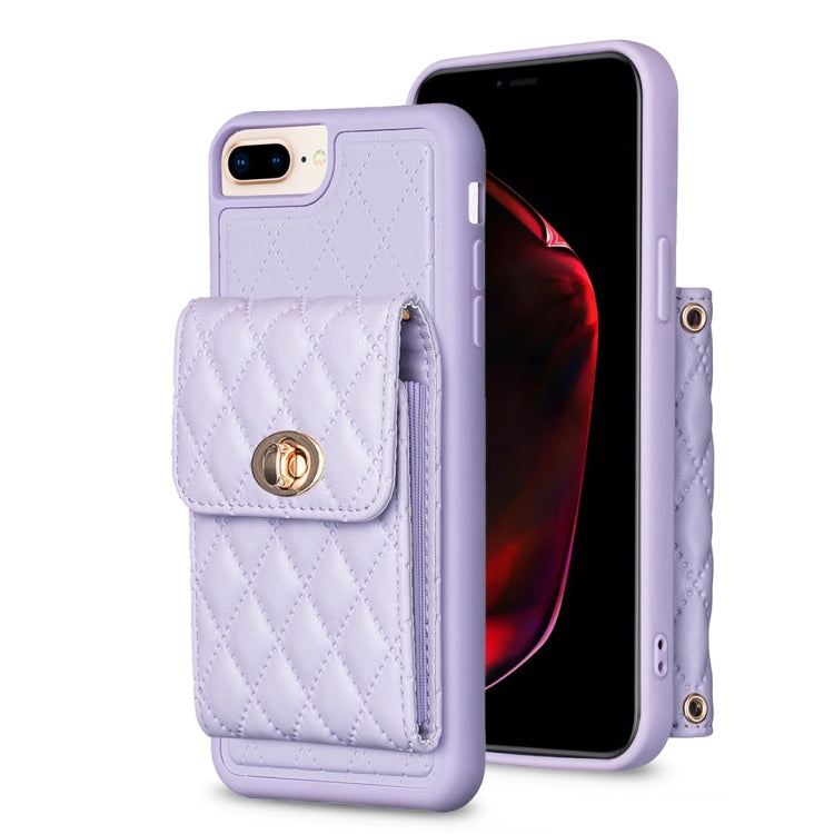 Estuche de teléfono iPhone 7 Plus 8 Plus Cuero Rómbico Hebilla Metal Vertical (Púrpura)