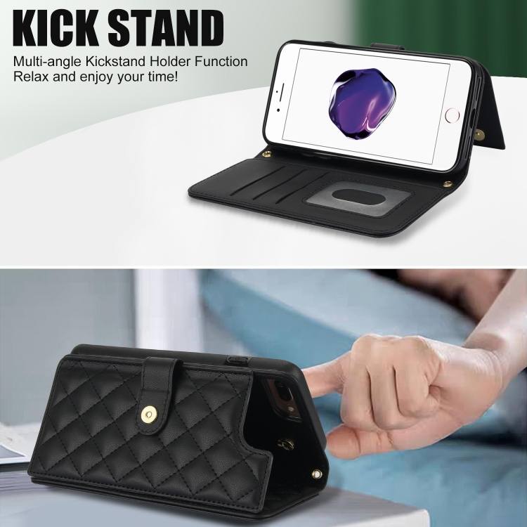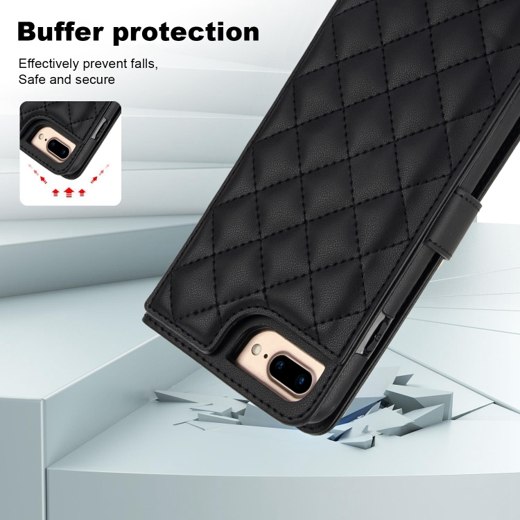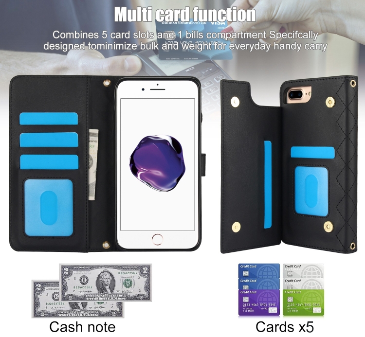Funda para iPhone 7 Plus/8 Plus Cruzada de Cuero Rómbico Multifunción (Negro)
