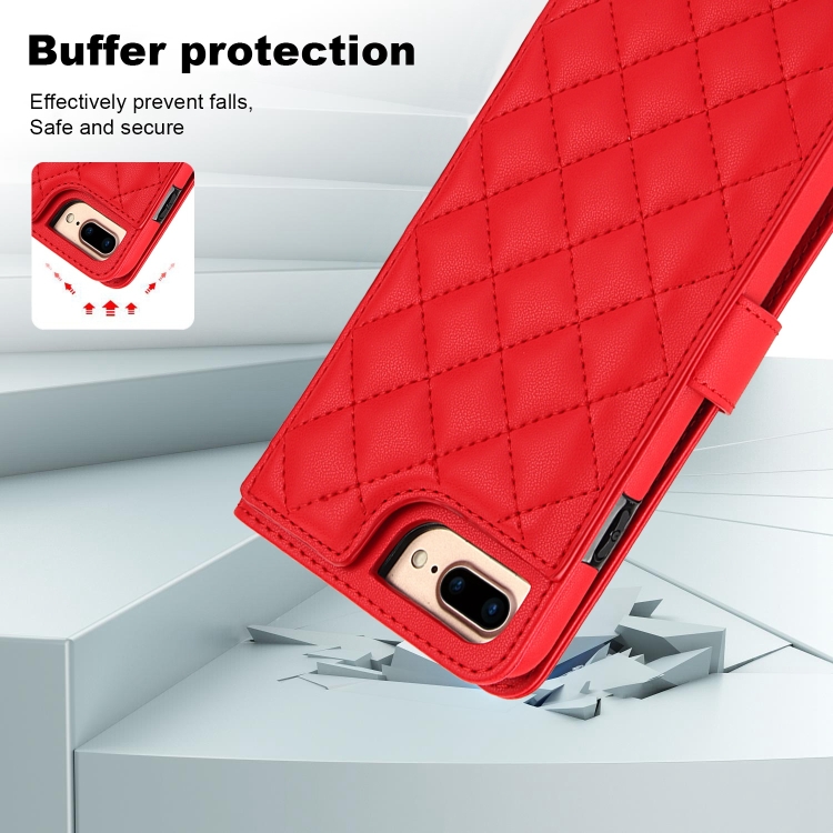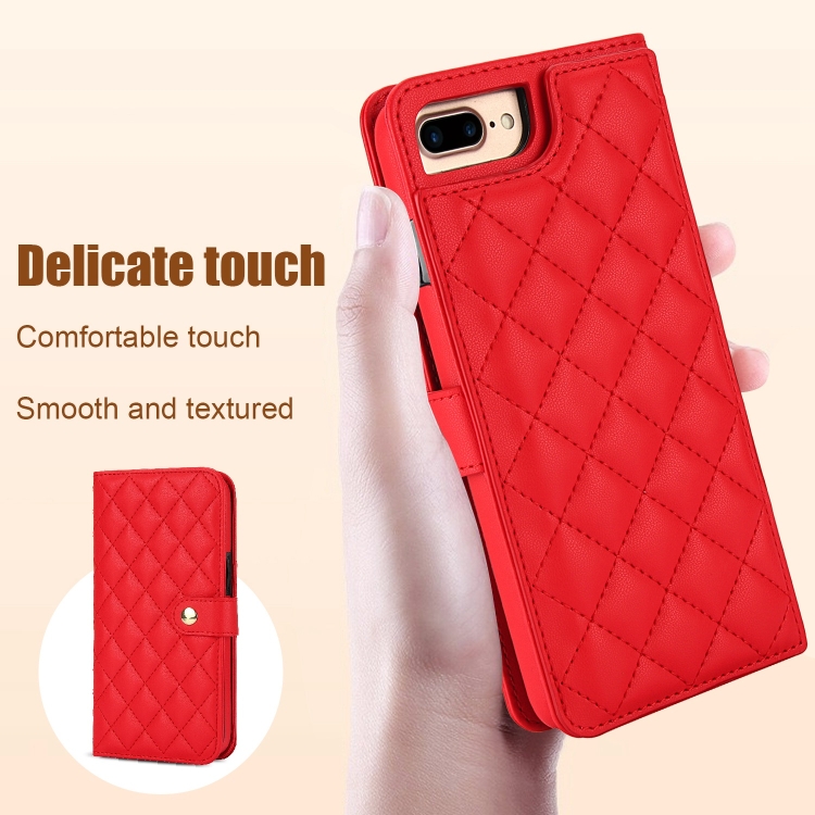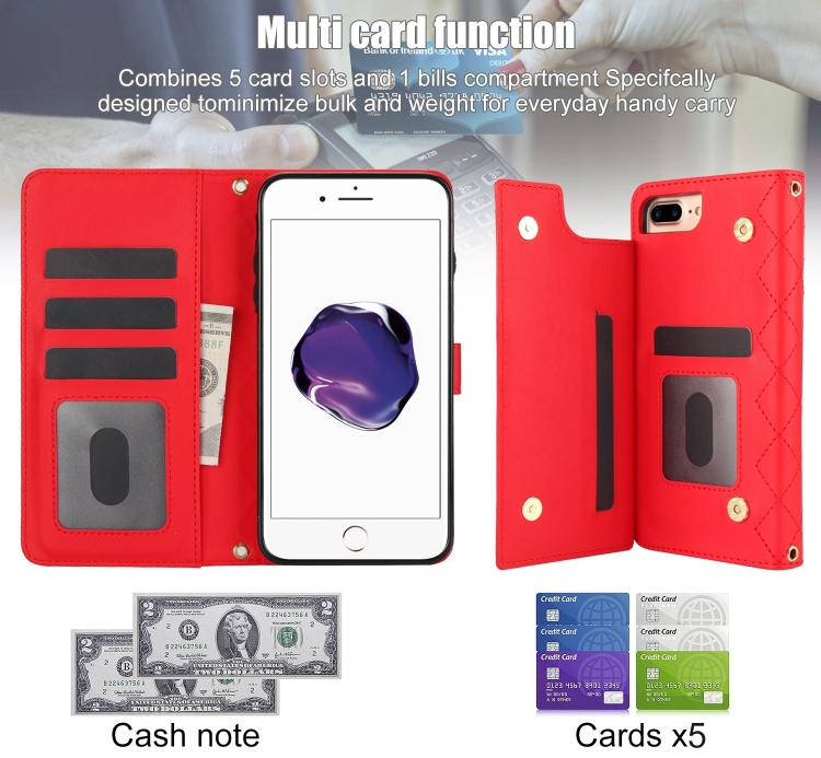 Funda Cruzada de Cuero Rómbico para iPhone 7 Plus y 8 Plus Multifunción (Rojo)