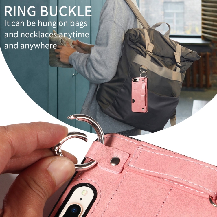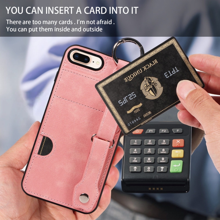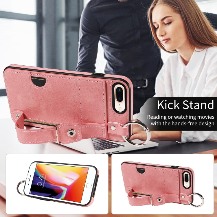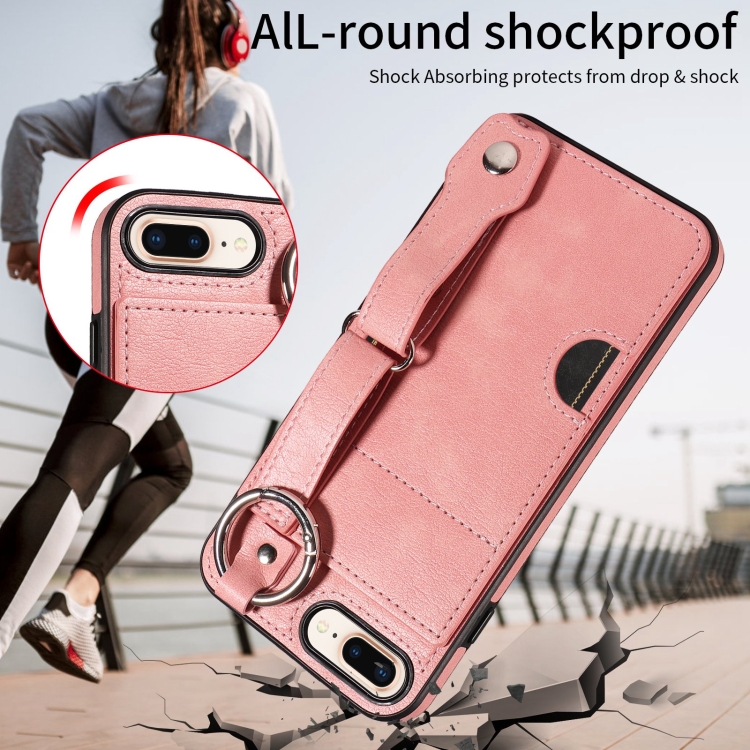 Funda para Teléfono iPhone 7 Plus/8 Plus con Anillo y Ranura para Tarjeta en la Muñeca (Rosa)