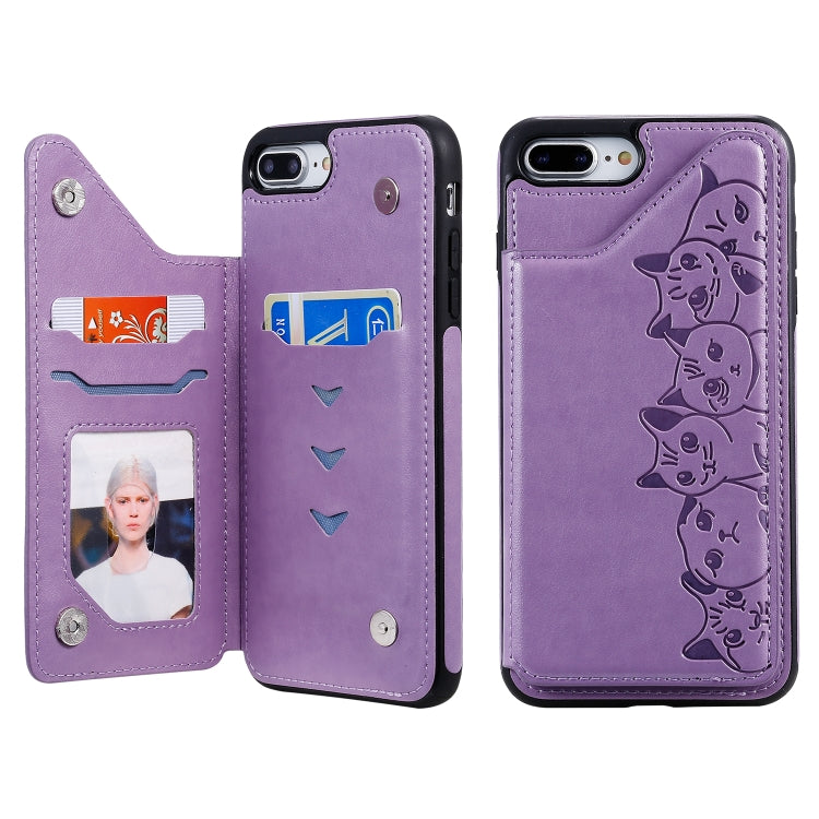 Estuche protector iPhone 7 Plus 8 Plus Six Cats con patrón en relieve soporte ranuras tarjetas marco fotos (Púrpura)