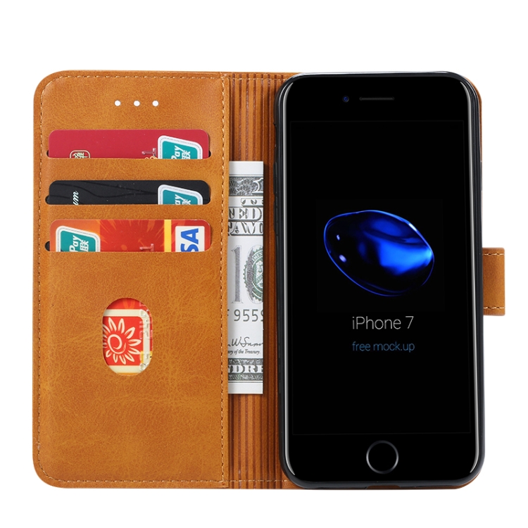 Estuche de Cuero Gussim para iPhone 8/7 con Tapa Magnética Horizontal Soporte Ranuras Tarjetas Billetera (Amarillo)