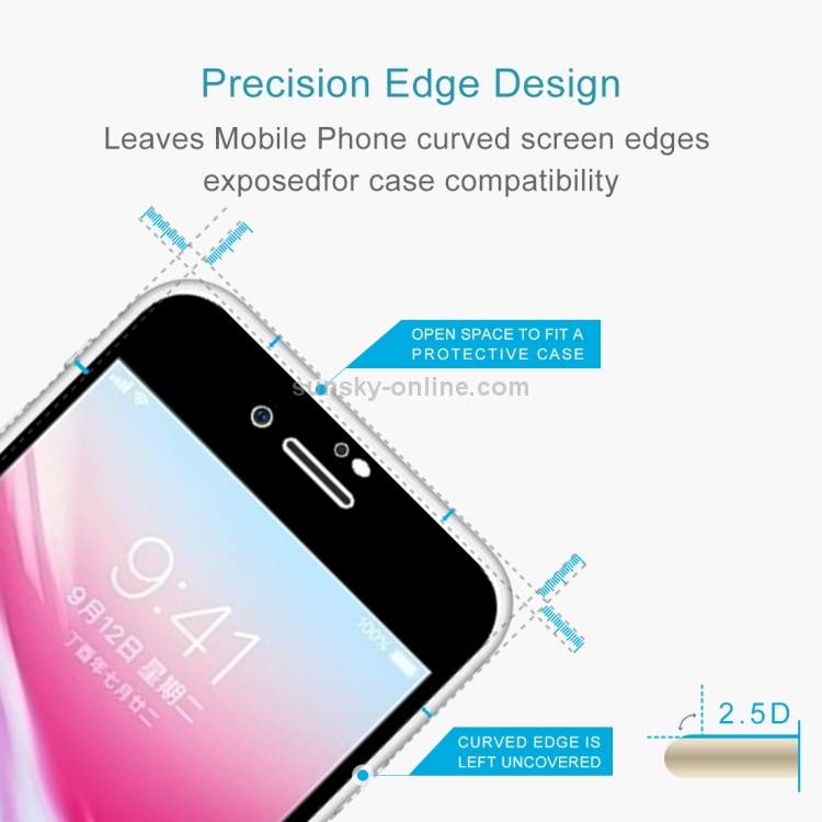 Película de Pantalla de Vidrio Templado iPhone 8 Plus 0.26mm 9H Dureza 2.5D Seda (Negro)