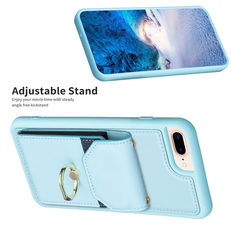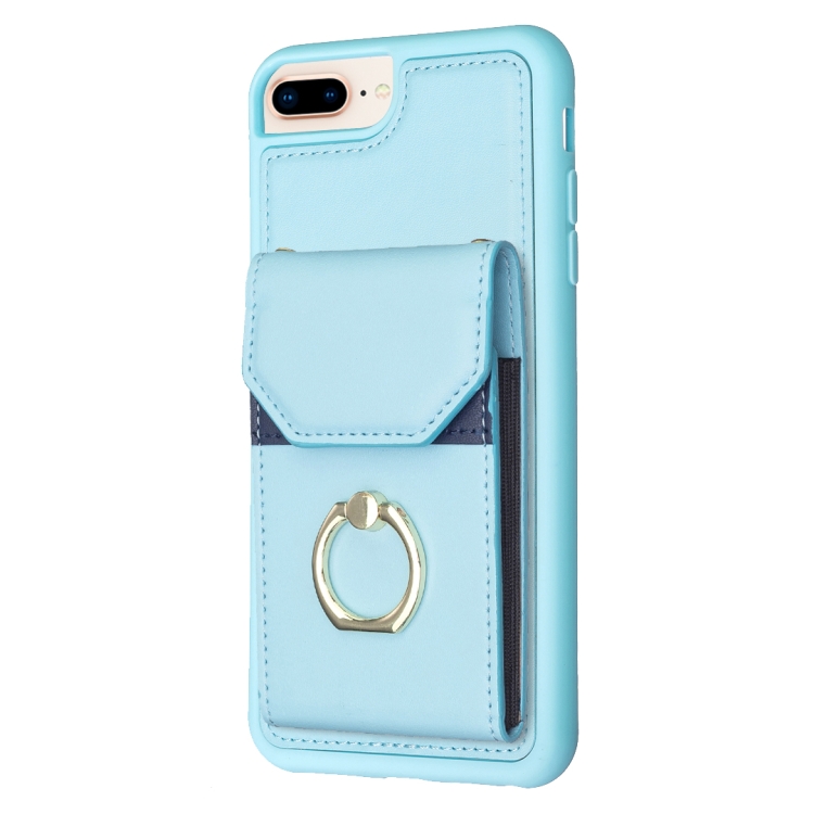Funda para Teléfono Bf29 para iPhone 8 Plus y 7 Plus con Soporte para Anillo y Bolsa para Tarjeta (Azul)