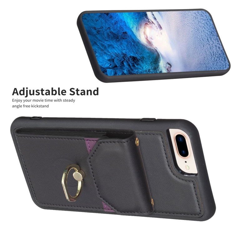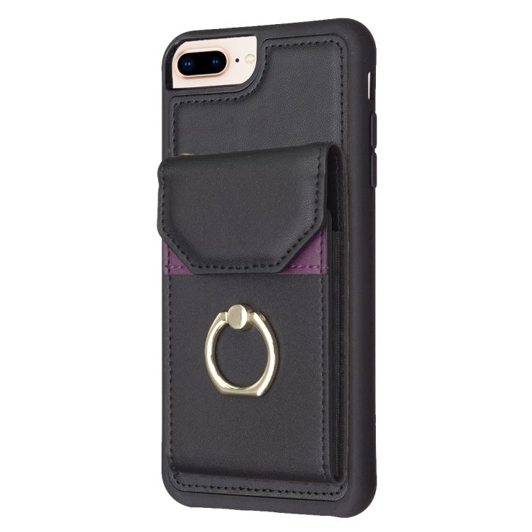 Funda para Teléfono Bf29 para iPhone 8 Plus/7 Plus con Soporte para Anillo y Bolsa para Tarjeta (Negro)