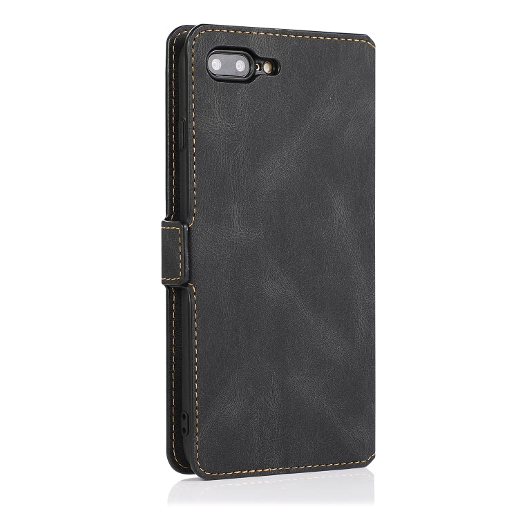 Estuche de Cuero iPhone 8 Plus 7 Plus Cierre Magnético Tapa Horizontal Soporte Ranuras Tarjetas Marco Fotos Billetera (Negro)