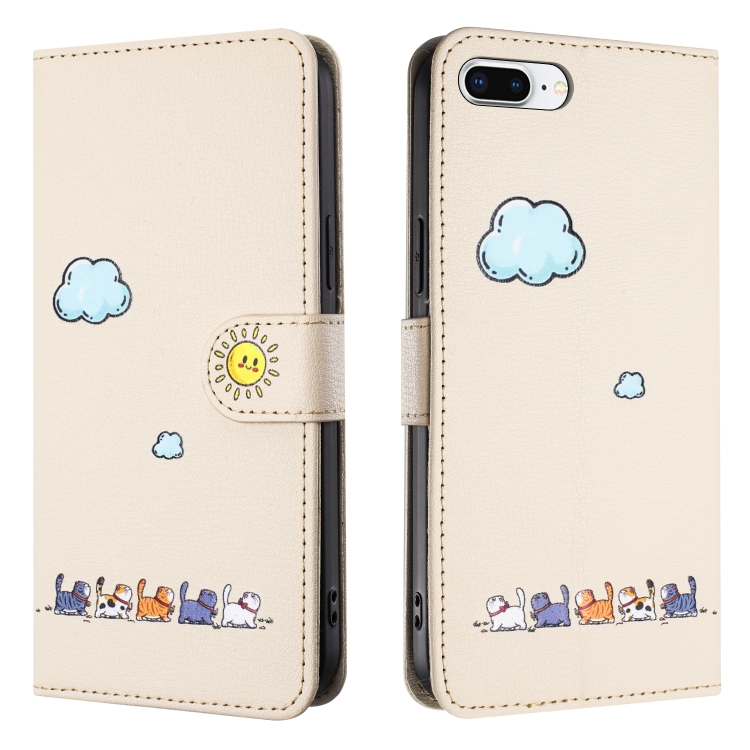 Funda para Teléfono iPhone 8 Plus/7 Plus Cuero Gatos Dibujos Animados (Beige Blanco)