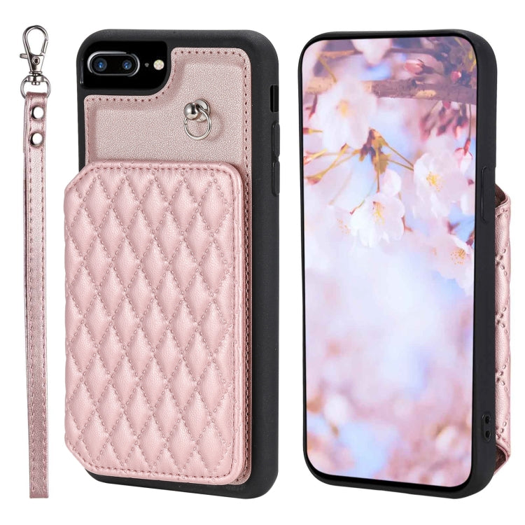 Funda para Teléfono iPhone 8 Plus/7 Plus con Bolsa para Tarjetas Textura de Rejilla y Cordón (Oro Rosa)