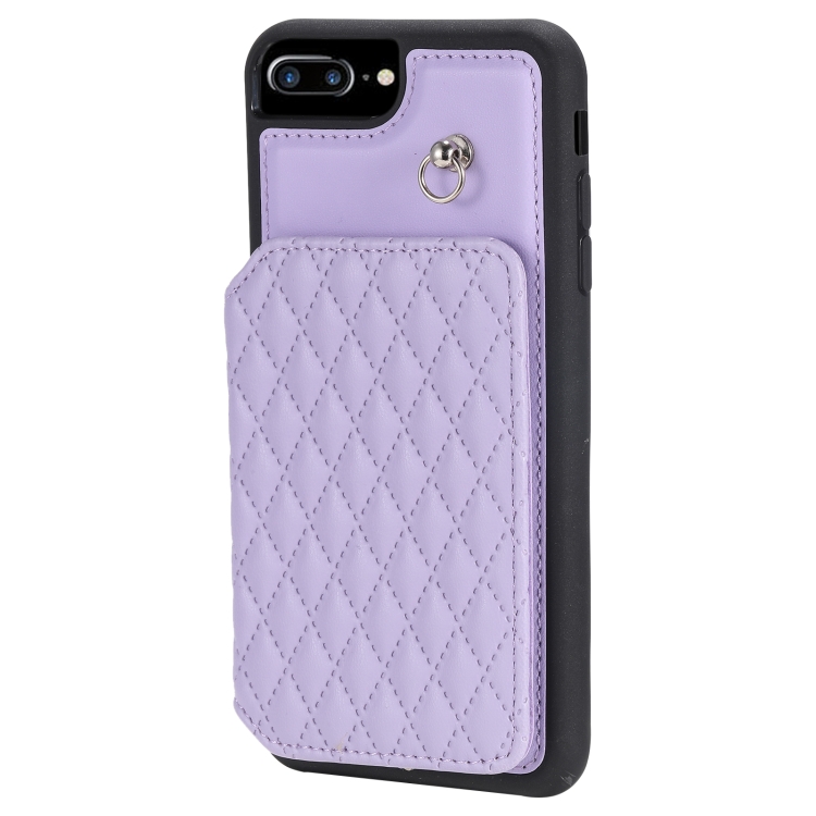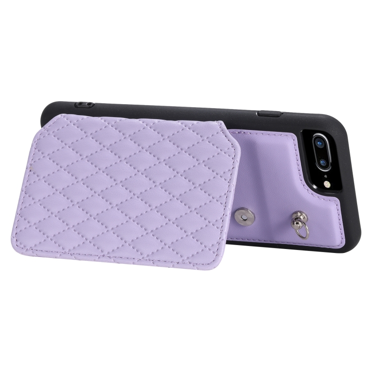 Funda para Teléfono iPhone 8 Plus/7 Plus con Bolsa para Tarjetas Textura de Rejilla y Cordón (Púrpura)