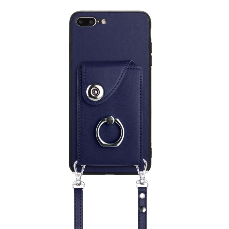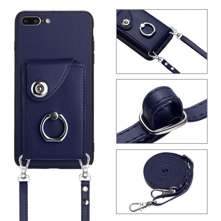 Funda para Teléfono iPhone 8 Plus/7 Plus con Soporte para Anillo y Bolsa para Tarjeta con Cordón Largo (Azul)