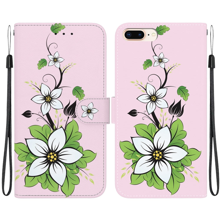 Funda para Teléfono iPhone 8 Plus 7 Plus Cuero Dibujo Coloreado Textura de Cristal (Lily)