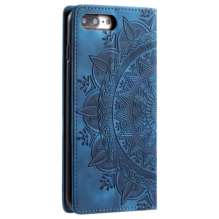 Funda para Teléfono iPhone 8 Plus/7 Plus Cuero Magnético con Relieve de Tótem (Azul)