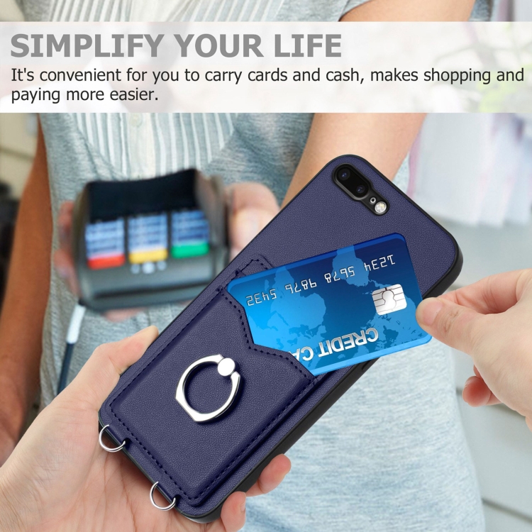 Funda para Teléfono iPhone 8 Plus/7 Plus R20 con Tarjetero y Anillo (Azul)