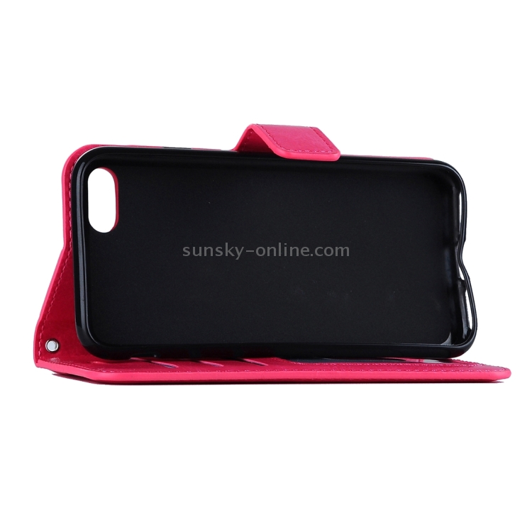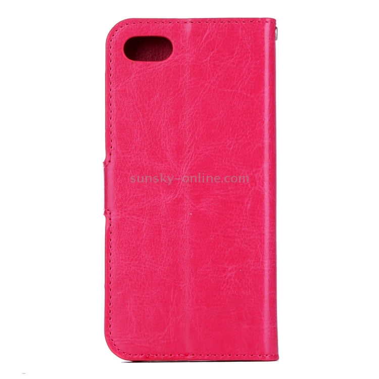 Funda de Cuero para iPhone 8 Plus y 7 Plus Crazy Horse Texture con Tapa Horizontal, Hebilla Magnética, Soporte, Ranuras para Tarjetas, Billetera y Marco de Fotos (Magenta)