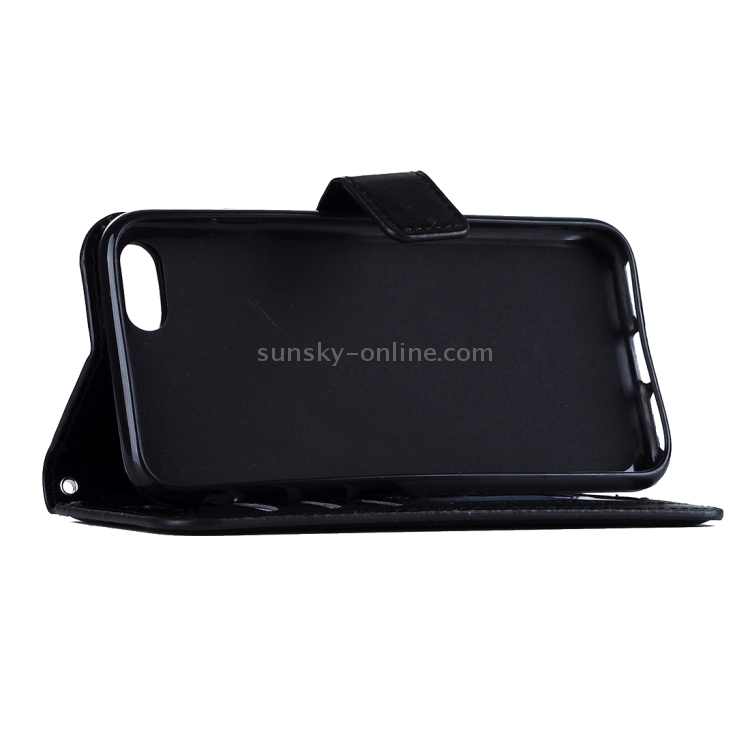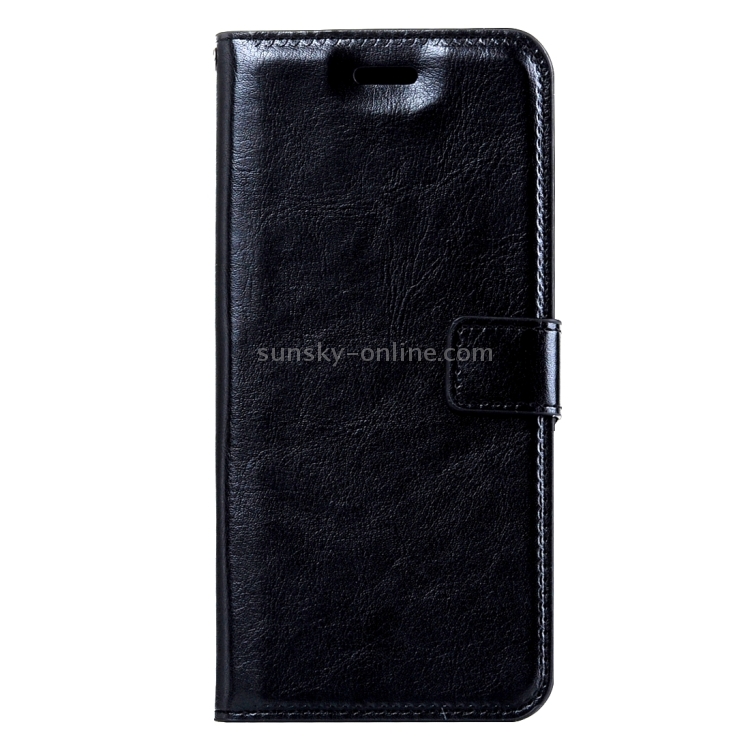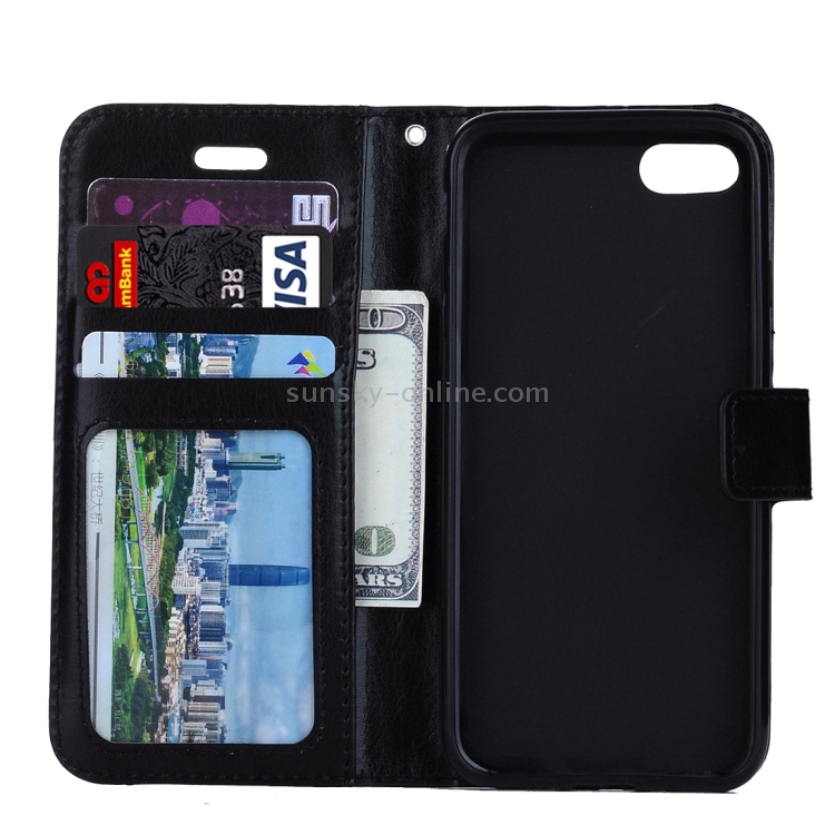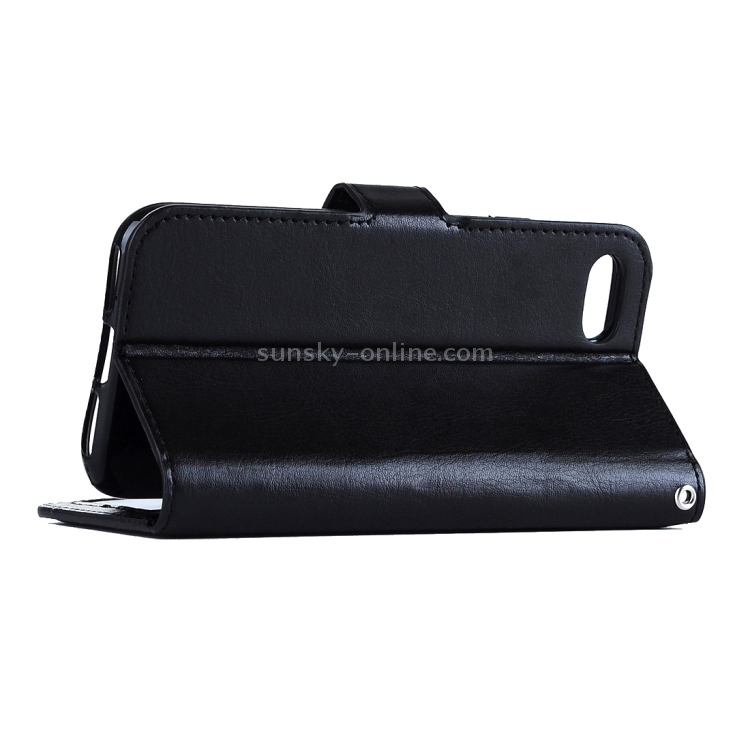 Funda de Cuero para iPhone 8 Plus y 7 Plus con Tapa Horizontal Textura Caballo Loco Hebilla Magnética Soporte Ranuras Tarjetas Billetera Marco Fotos (Negro)