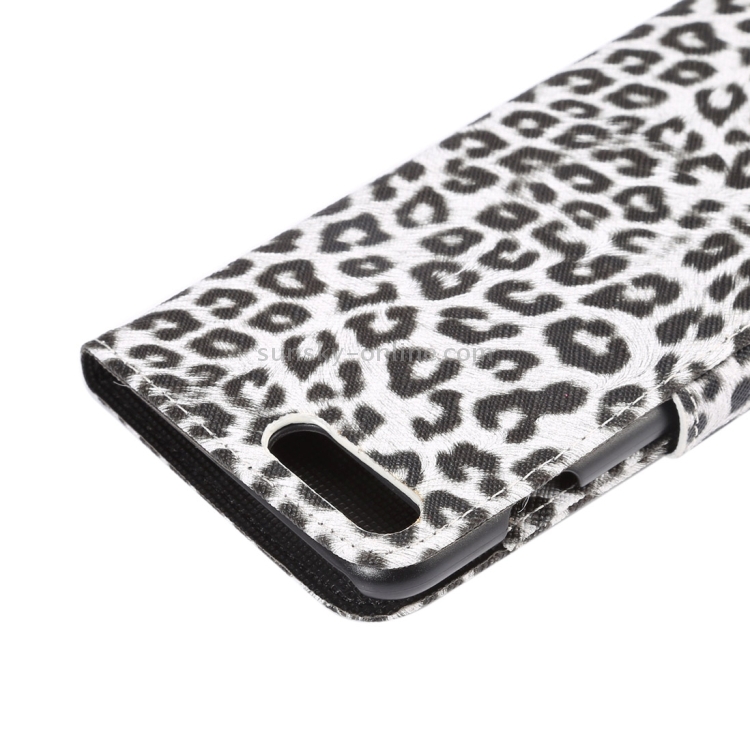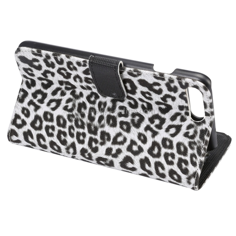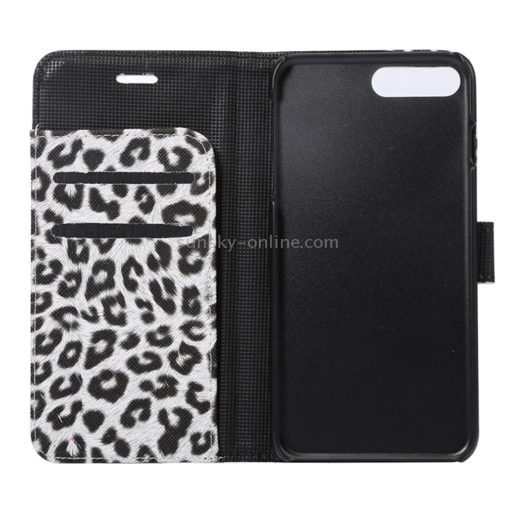 Funda de Cuero para iPhone 8 Plus y 7 Plus con Tapa Horizontal, Textura de Leopardo, Soporte, Ranuras para Tarjetas y Billetera (Blanco)