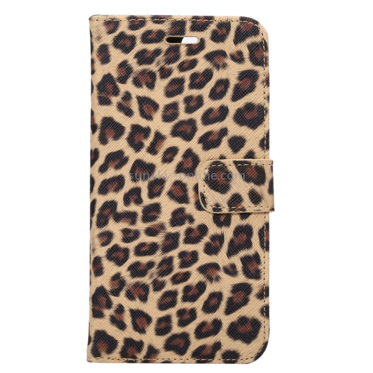 Funda de Cuero para iPhone 8 Plus y 7 Plus con Tapa Horizontal, Textura Leopardo, Soporte, Ranuras para Tarjetas y Billetera (Marrón)