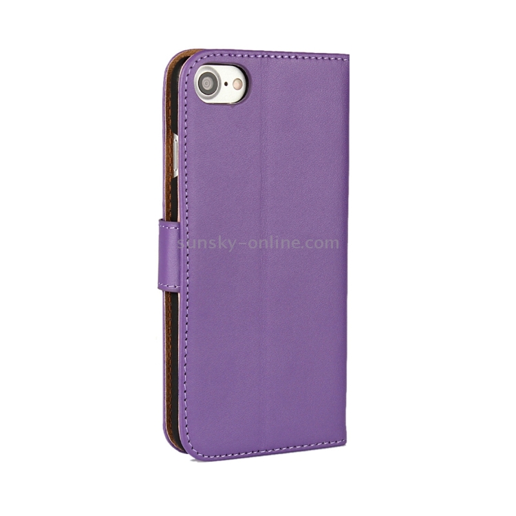 Funda de Cuero para iPhone 8 y 7 con Tapa Horizontal Genuina, Soporte, Ranuras para Tarjetas y Billetera (Púrpura)